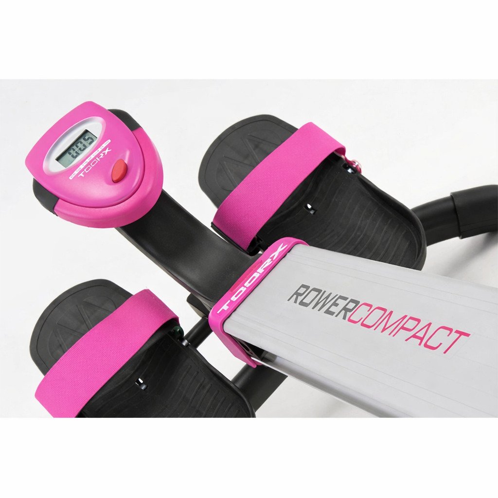 Toorx Rower Compact – tai paprastas, tačiau efektyvus namų irklavimo treniruoklis. Tvirtas plieninis rėmas, hidraulinė irklavimo sistema bei tikslus kompiuteris. Treniruoklis turi sulankstymo galimybę, todėl jis neužima daug vietos.