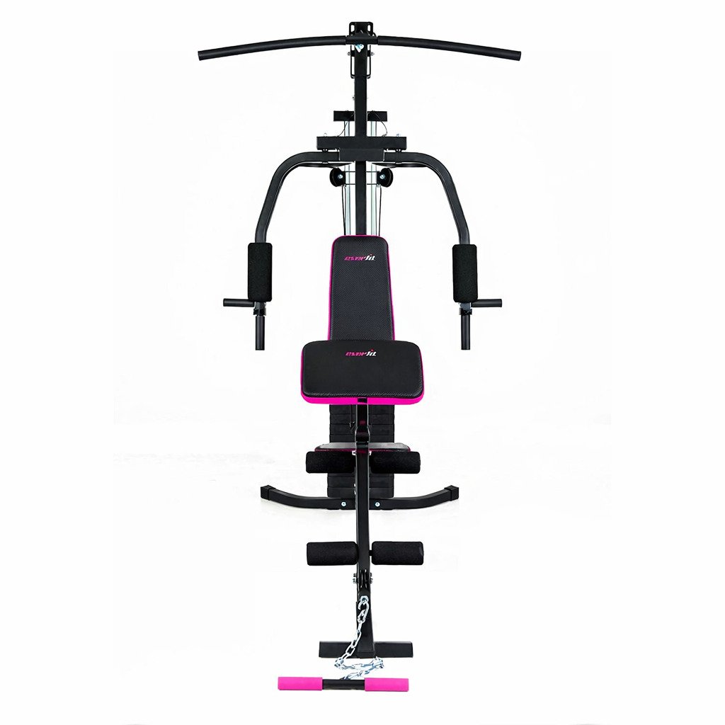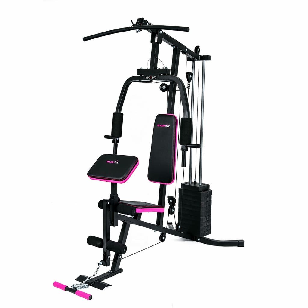 Daugiafunkcinis jėgos treniruoklis Everfit MSK-500, su kuriuo galima atlikti daugiau kaip 15 pratimų įvairioms raumenų grupėms.